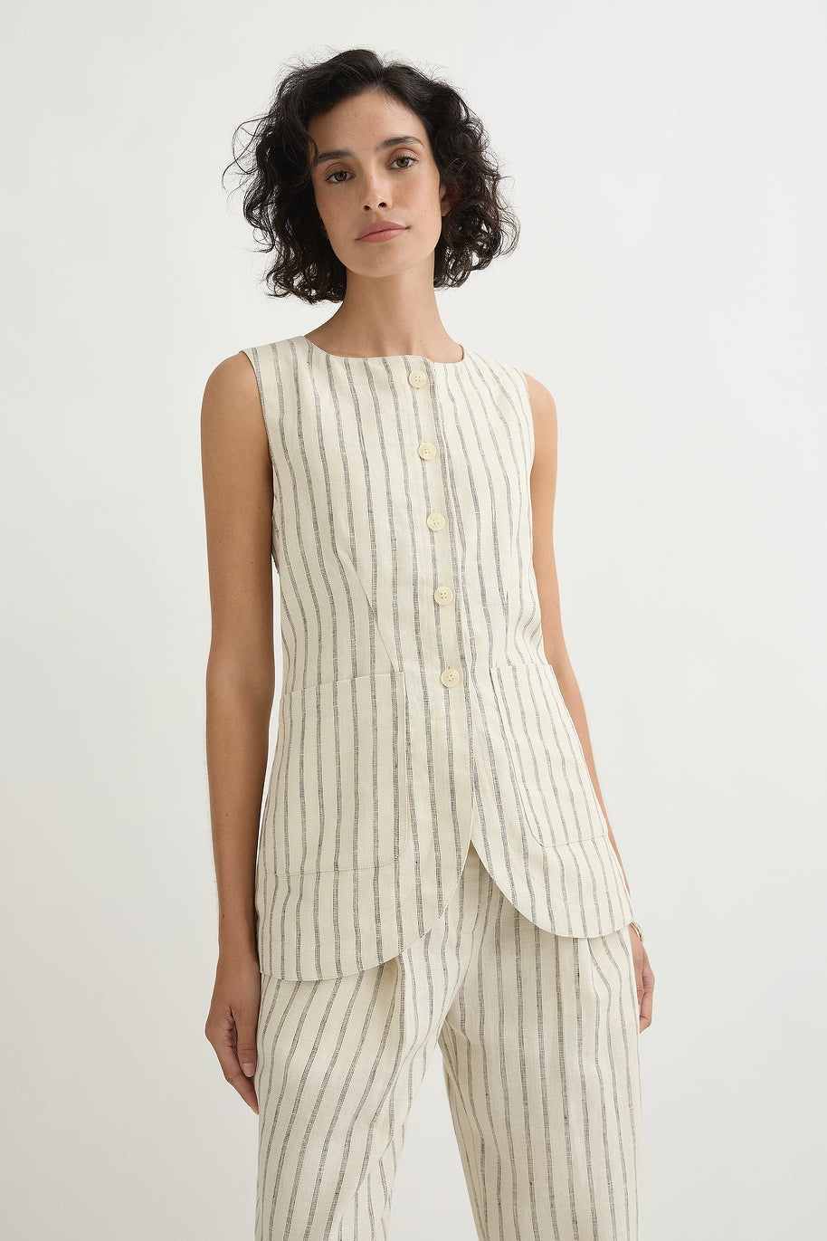 Emma Vest - Cream Pinstripe