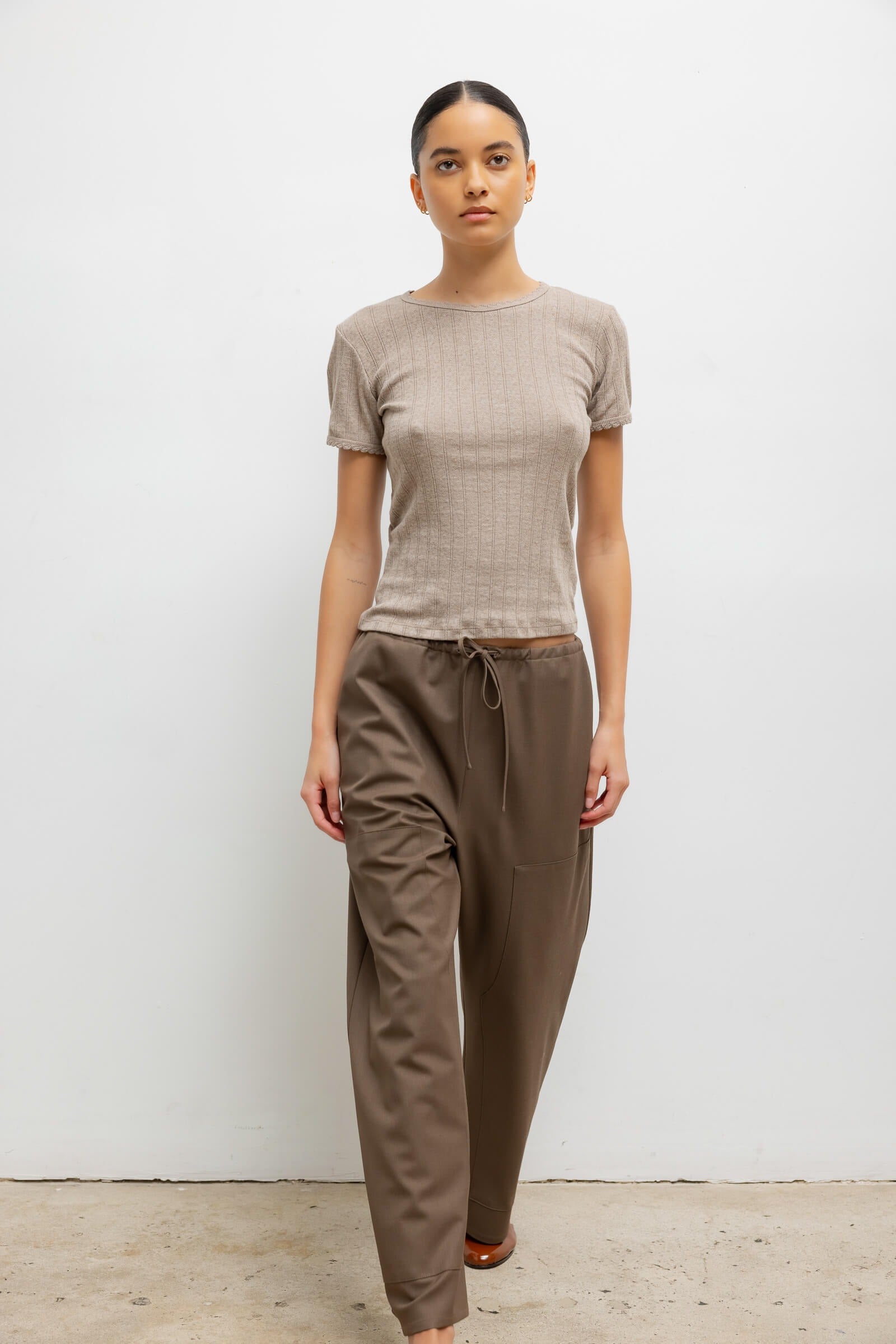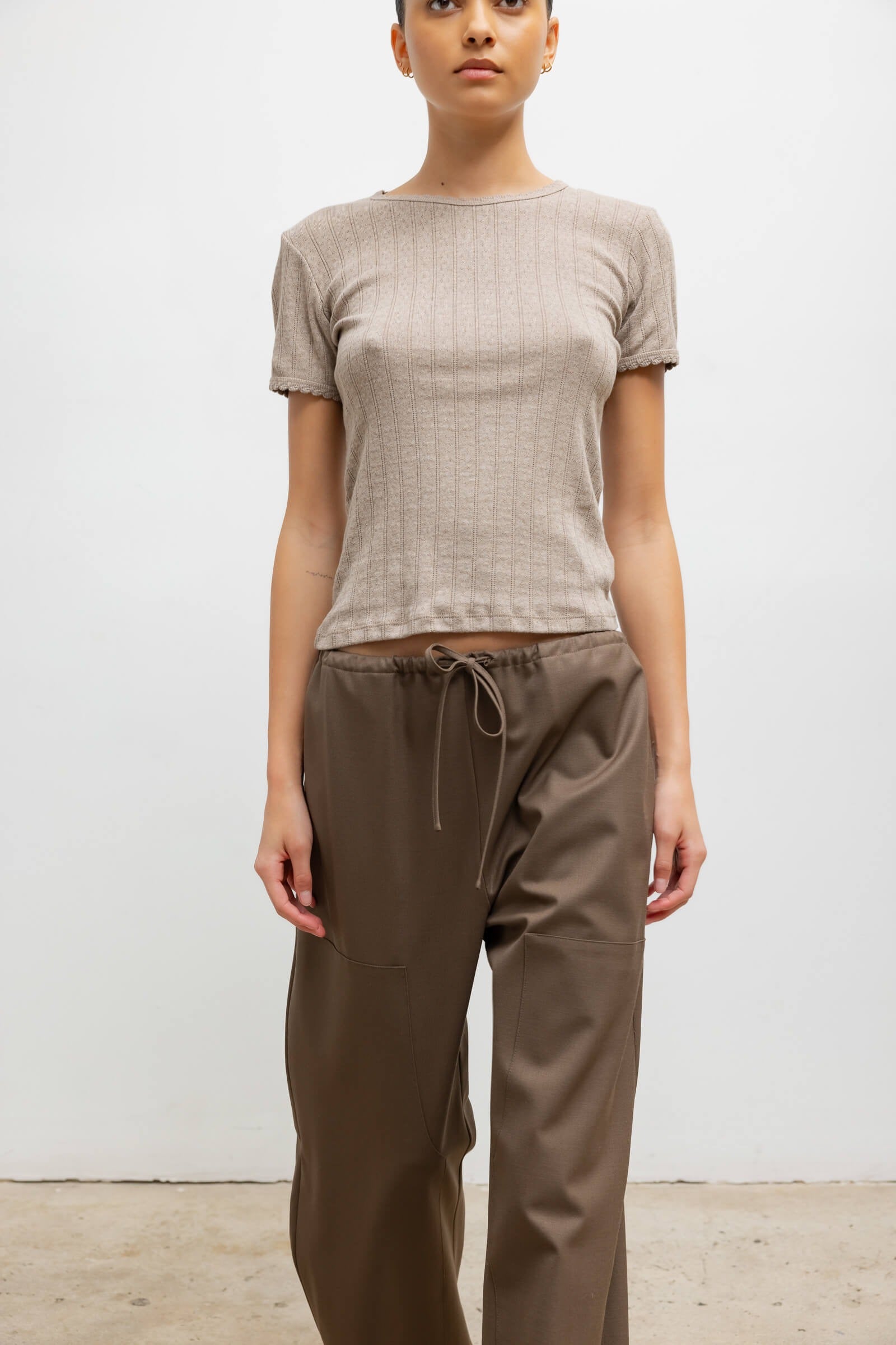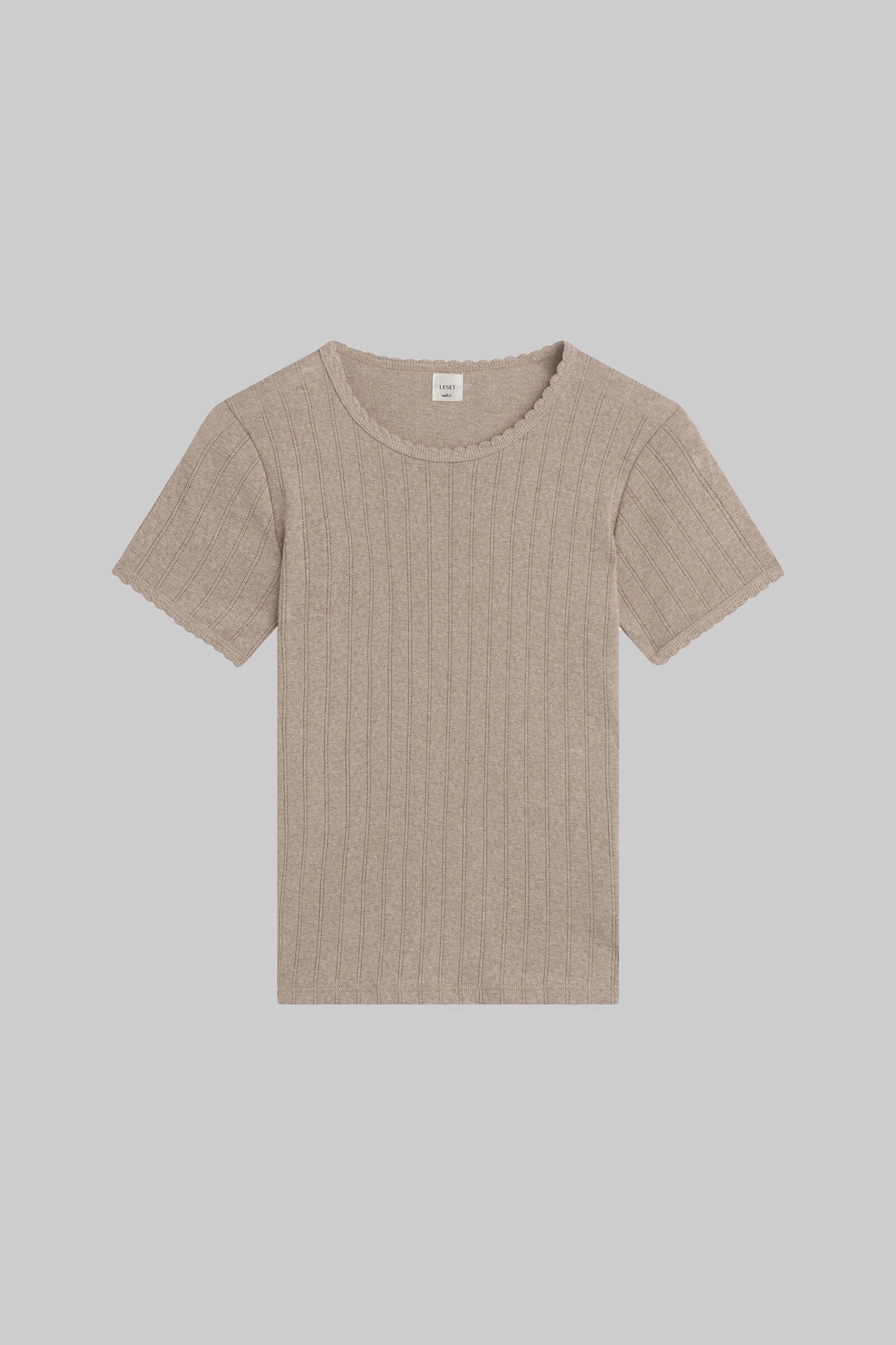- Silm fit featuring a classic crew neckline and fitted short sleeves