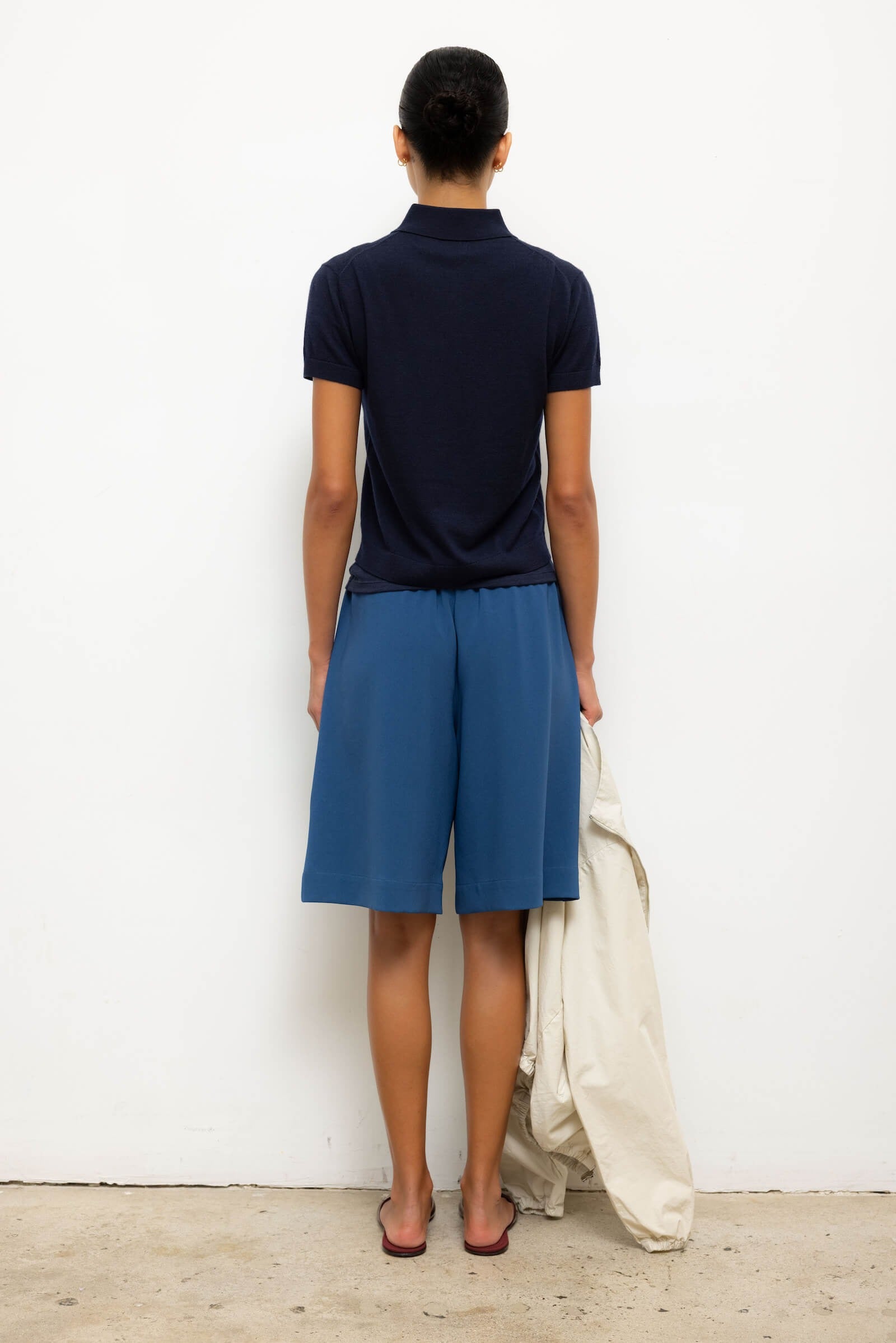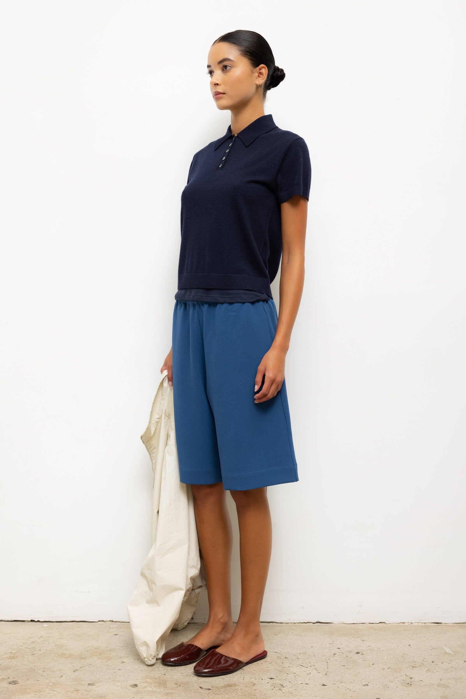 • Classic pointed polo collar, tonal henley buttons, and ribbed finishings