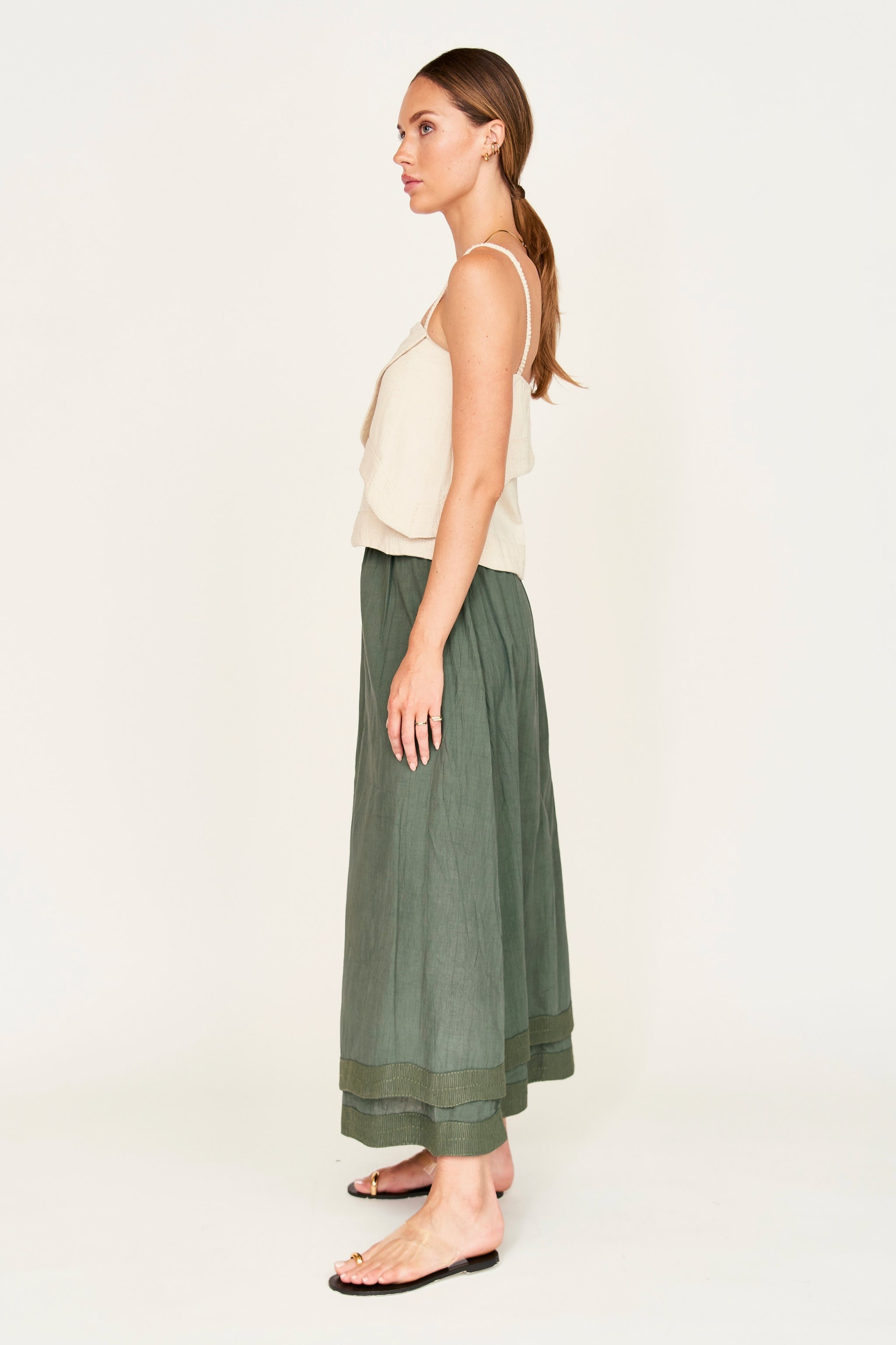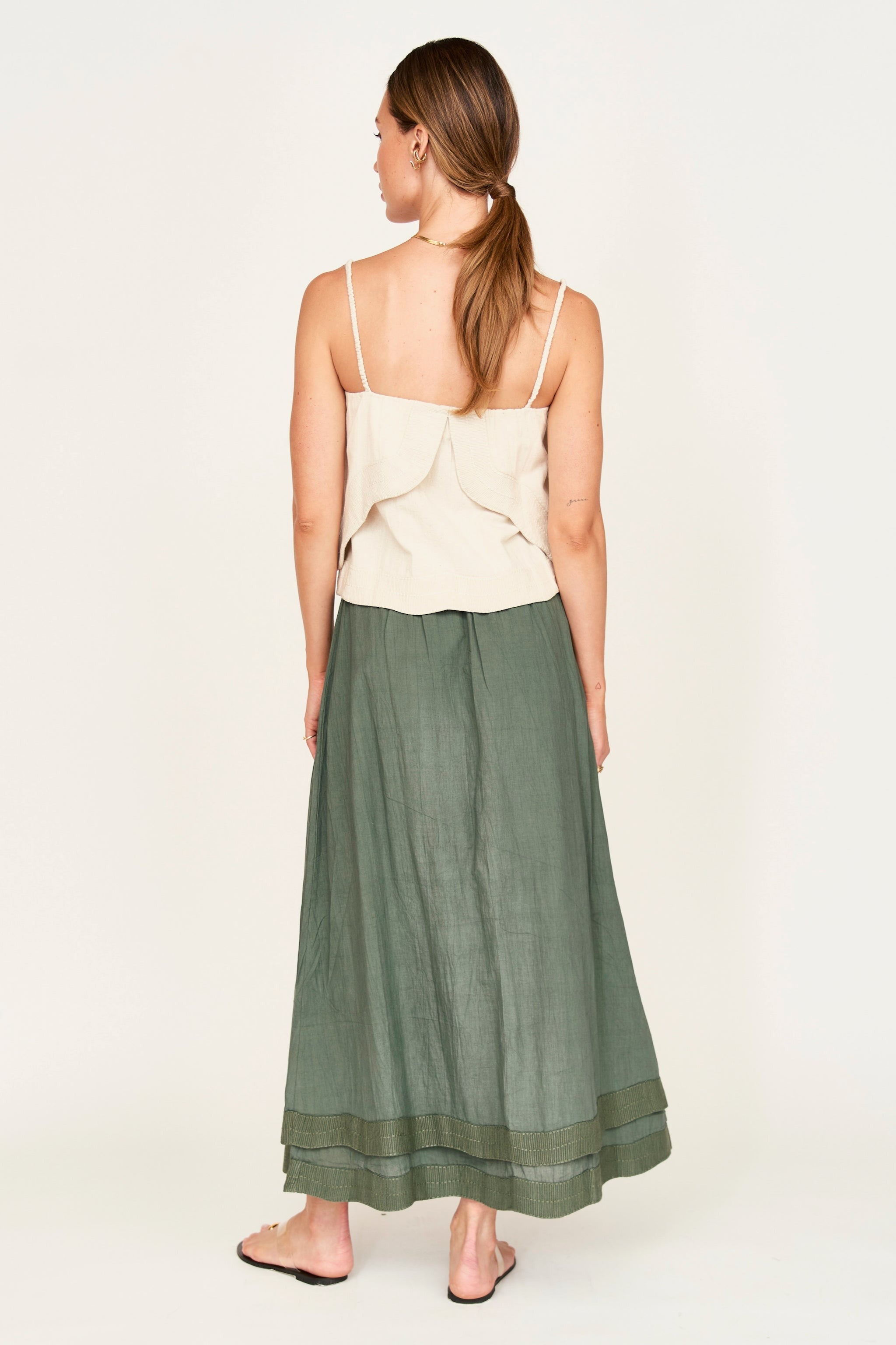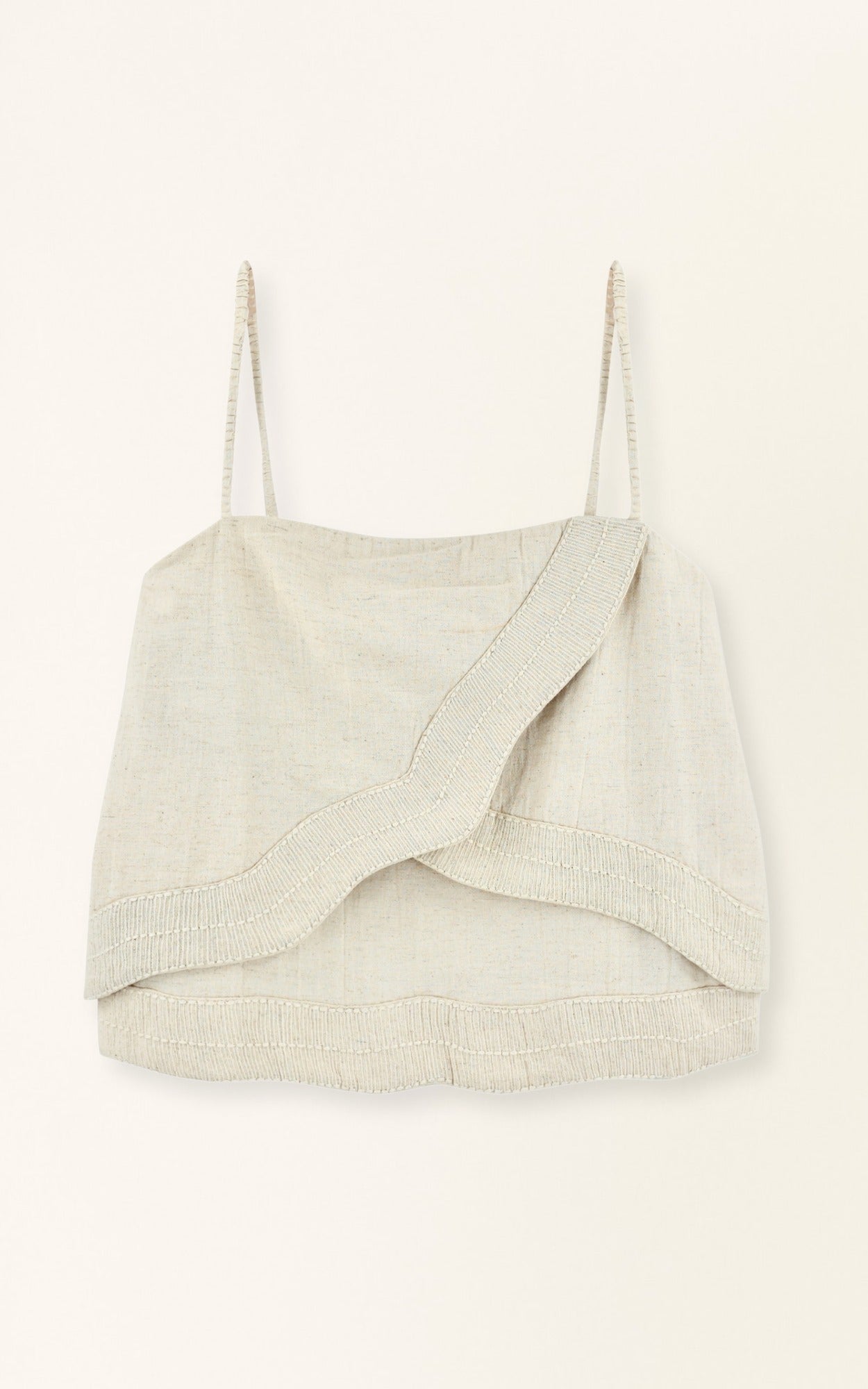 - Tank with asymmetrical tiers and linear embroidery