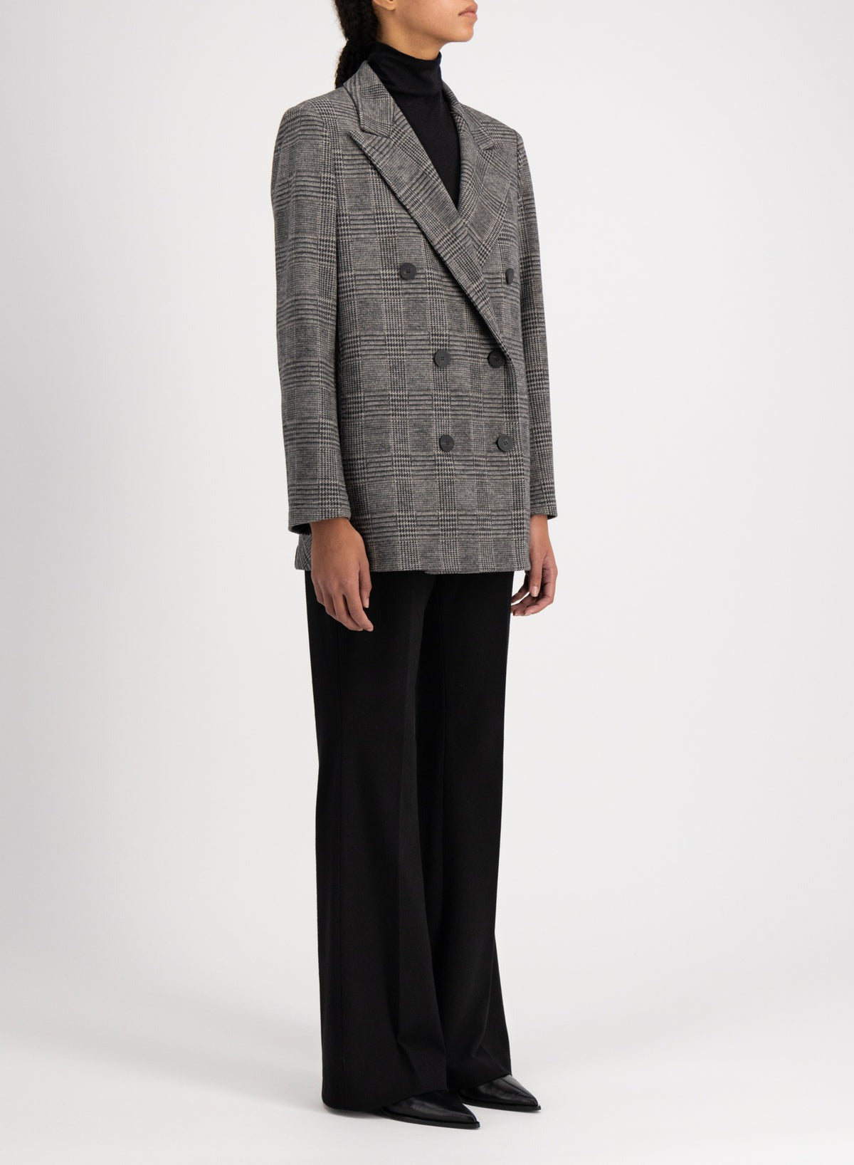 - Double breasted with 6-button fastening
